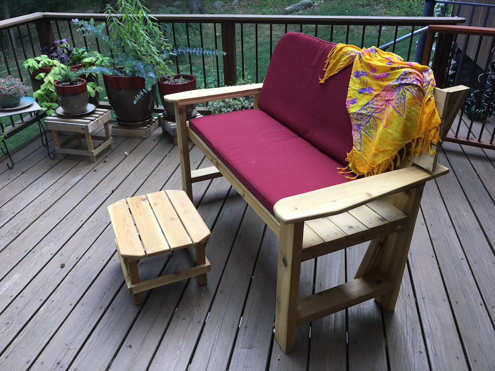 Everything that we produce at TimberMorphosis originally came into being because of a need in our home: lamps to replace the flimsy and ungainly torchieres purchased at an office supply store, a bench to watch the dawn from our deck; a sanctuary in which our dog could guard his food from the curious cats. We have tried to create works of wood that would harmonize with the simplicity and beauty of our surroundings in Windfall, and we hope that they will find a place in your home, classroom, or office as well.